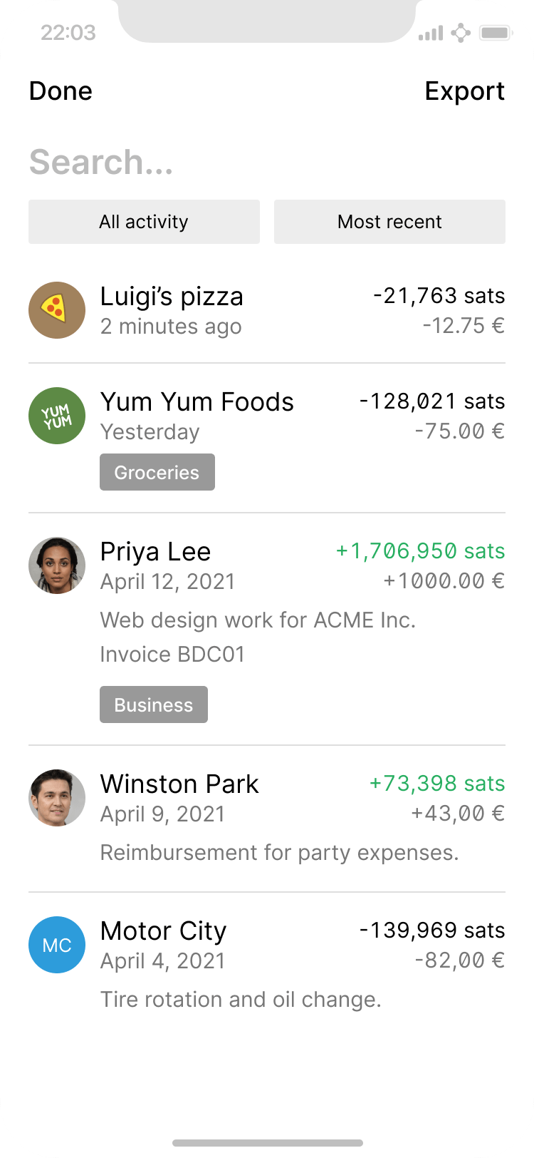 Search functionality within a digital wallet is incredibly useful for anyone frequently using it, especially as micropayments become more prevalent. Given that this function relies heavily on high-quality data, it’s important to make it easy for users to add relevant metadata to their transactions.