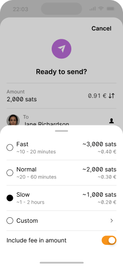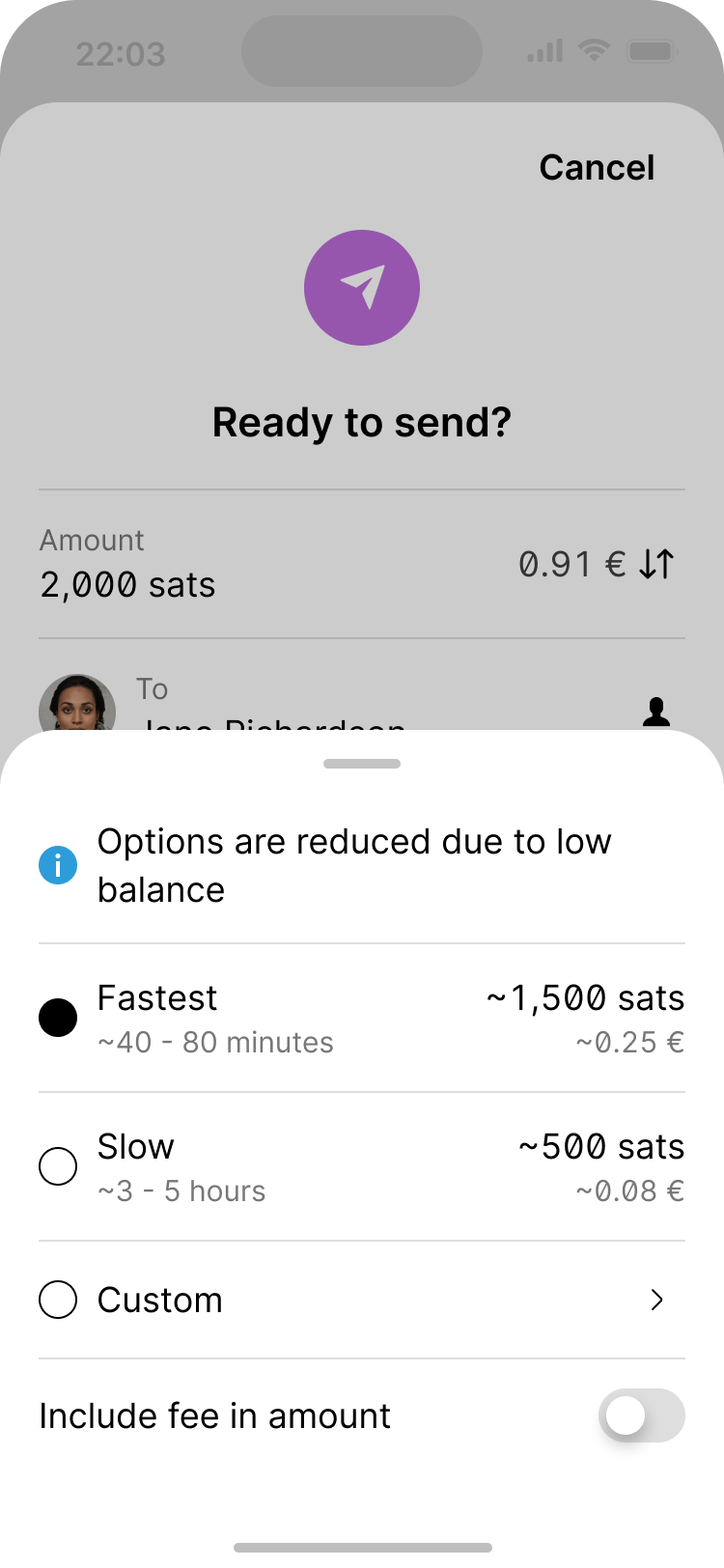 Let’s take a look at how fees surface in a regular send flow, and how users can quickly pull up additional details.