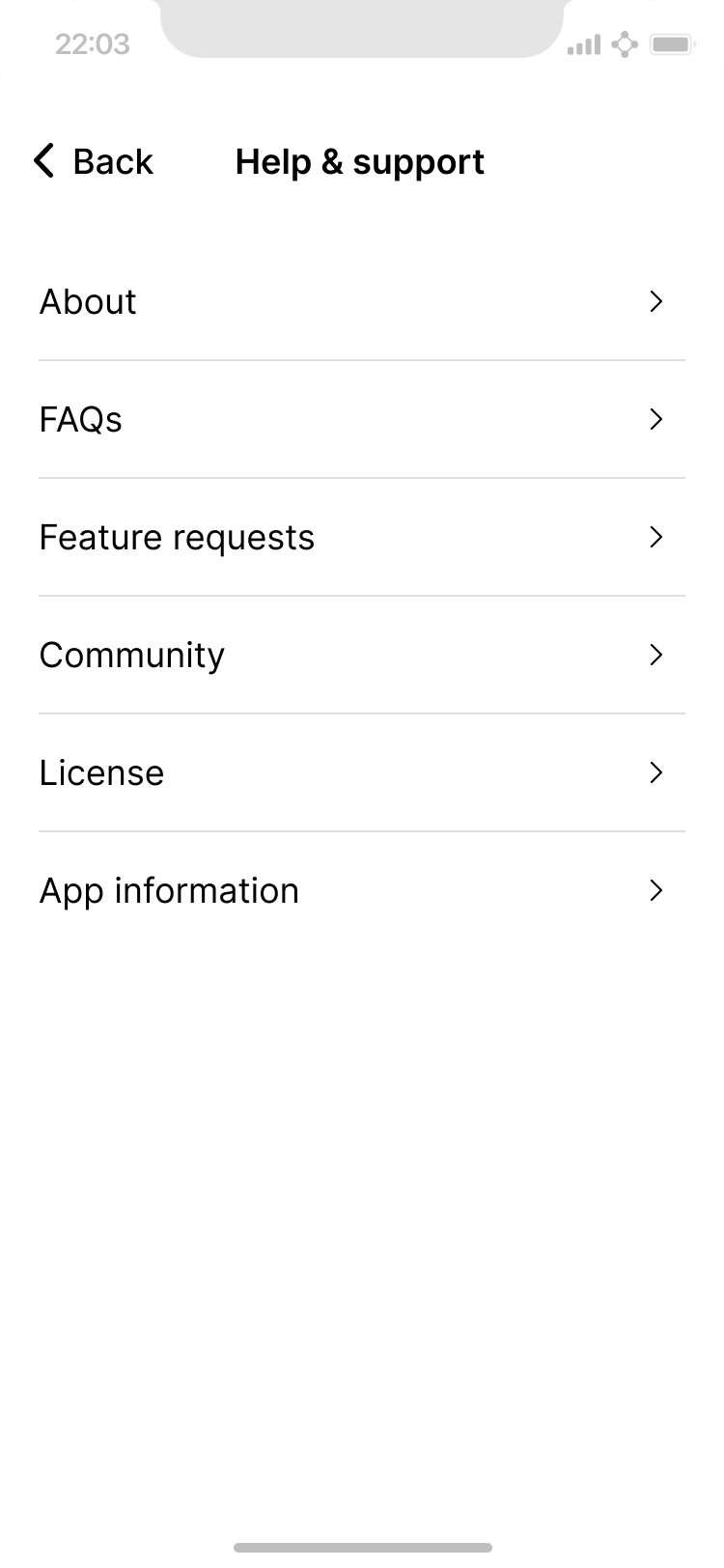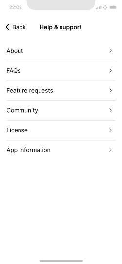 Help & support options ensure users can get the right information when they need it.