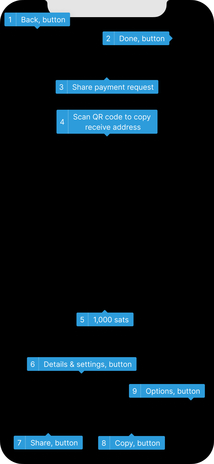 It is impossible to know what a button does when it is only labelled as “button”, and not with its function. Testing has shown that QR codes are often not selectable at all, which makes them invisible to users reliant on screen readers. A good solution is a label such as “QR code to copy the receive address”.